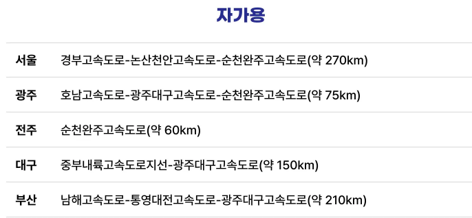 축제장에 오실 수 있는 방법으로 자가용, 버스, 기차가 있으며 아래와 같습니다.